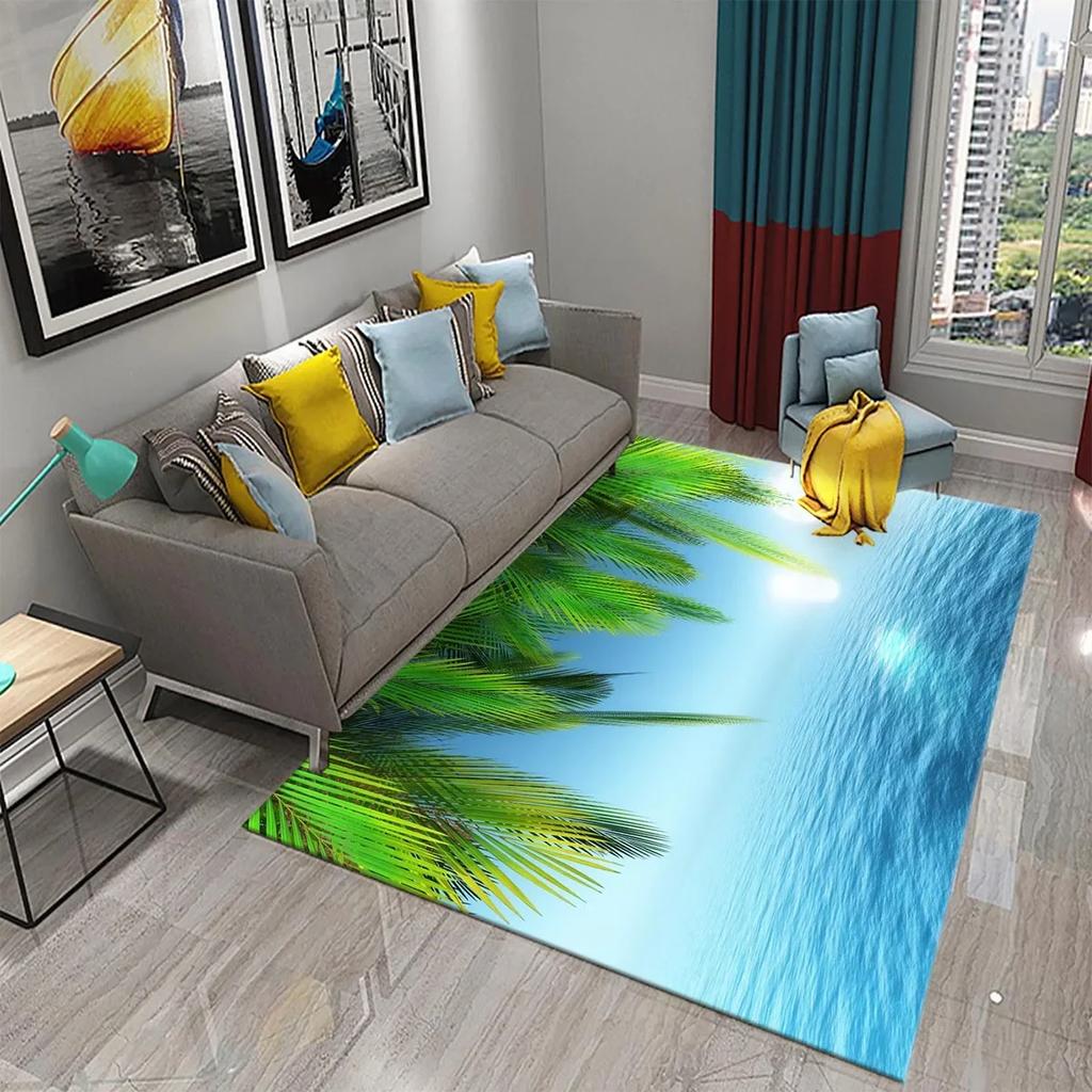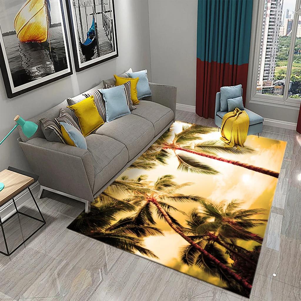 Зеленые Тропические Пальмовые Листья Закат Ковер Декор Гостиной Напольный Коврик Нескользящий Впитывающий Ковер для Кухни Ванной Прихожий Коврик