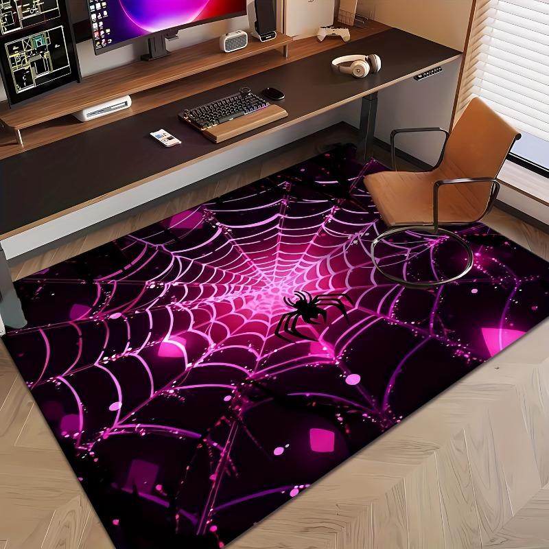1Pc Pink Spider Web Pattern Carpet Soft and Living Room Doormat and Dining Room Foyer Game Room Bedroom Floor Mat Decoration