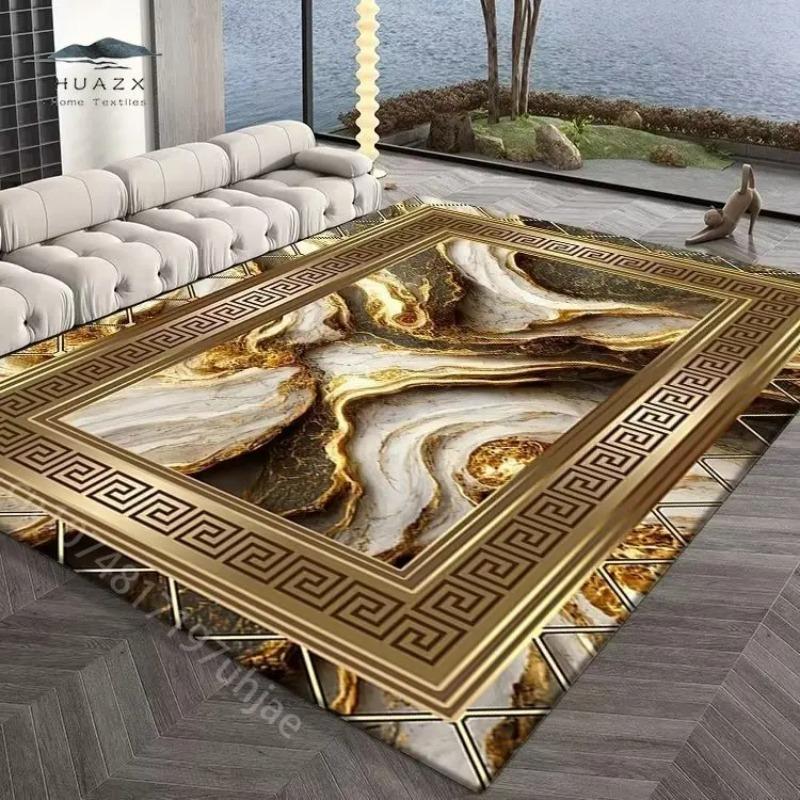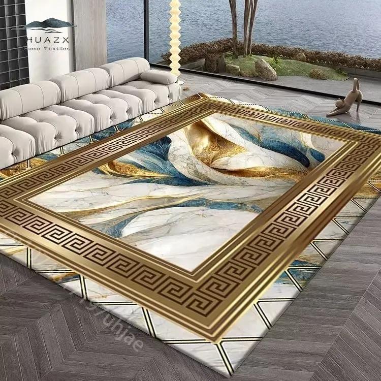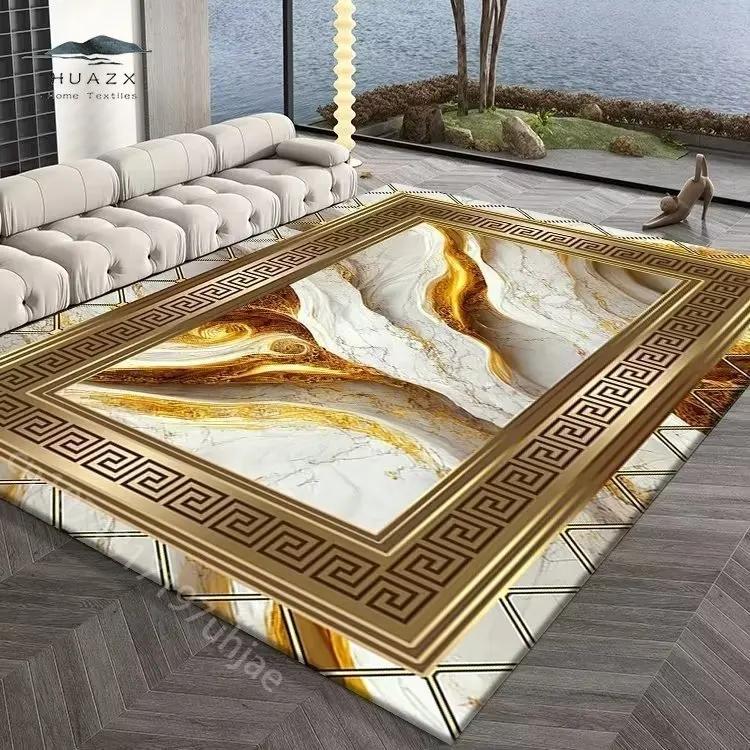 Золотой Абстрактный Роскошный Ковер для Спальни Ковры Большой Площади Прикроватные Ковры для Гостиной Мягкий Фланелевый Коврик для Отдыха Декорация