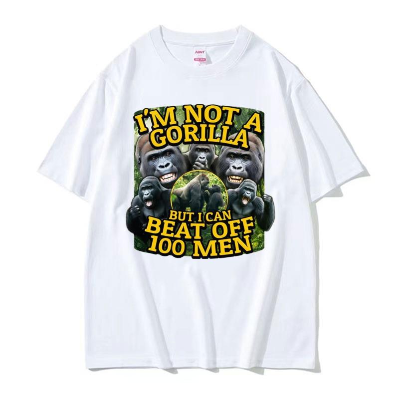 Забавные футболки с графикой мема Горилла против 100 мужчин Мужские Женские Винтажная Мода Летние Футболки Повседневная Летняя Высококачественная Футболка