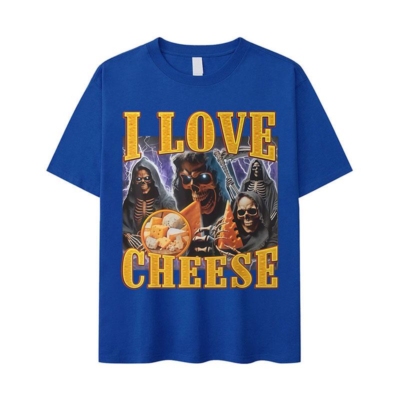 Забавная футболка с графическим мемом «Я люблю сыр» со скелетом для мужчин, винтажная, оверсайз, с коротким рукавом, модная, высококачественная хлопковая футболка