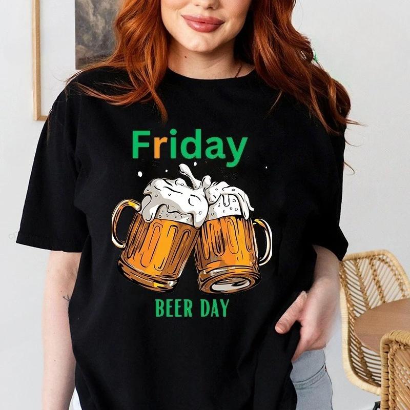 Women's Monday To Friday Beer T-shirts Fun Casual Fashion Sports T-shirts Skull Friday Beer Graphic T-shirts Women's Clothing