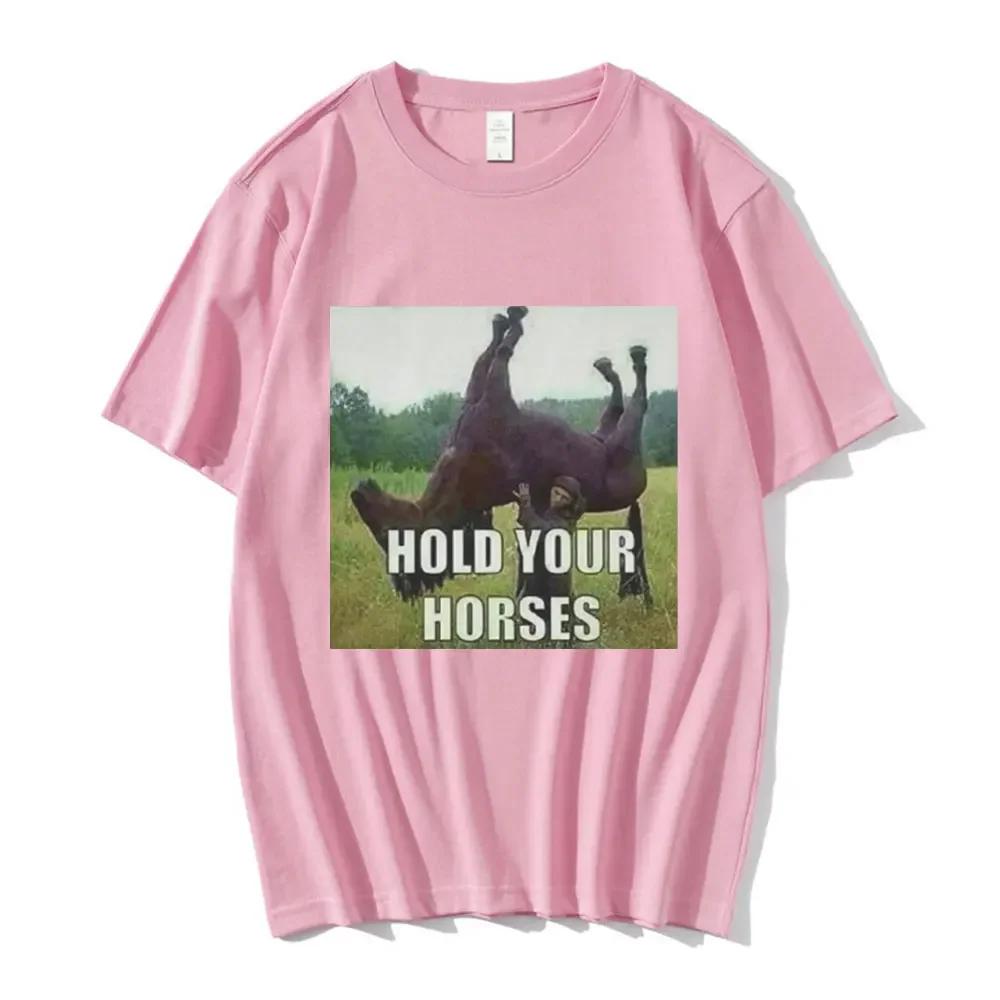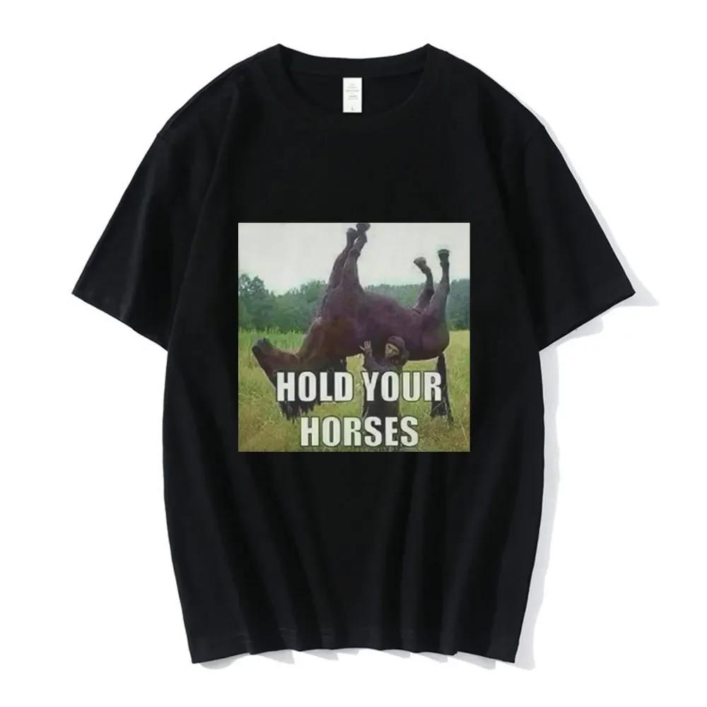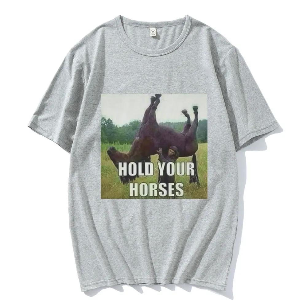 Придержи коня Смешной Мем Графическая Одежда Мода Хип-Хоп Короткий Рукав Летний С коротким рукавом Харадзюку Уличная Одежда Топы Футболки