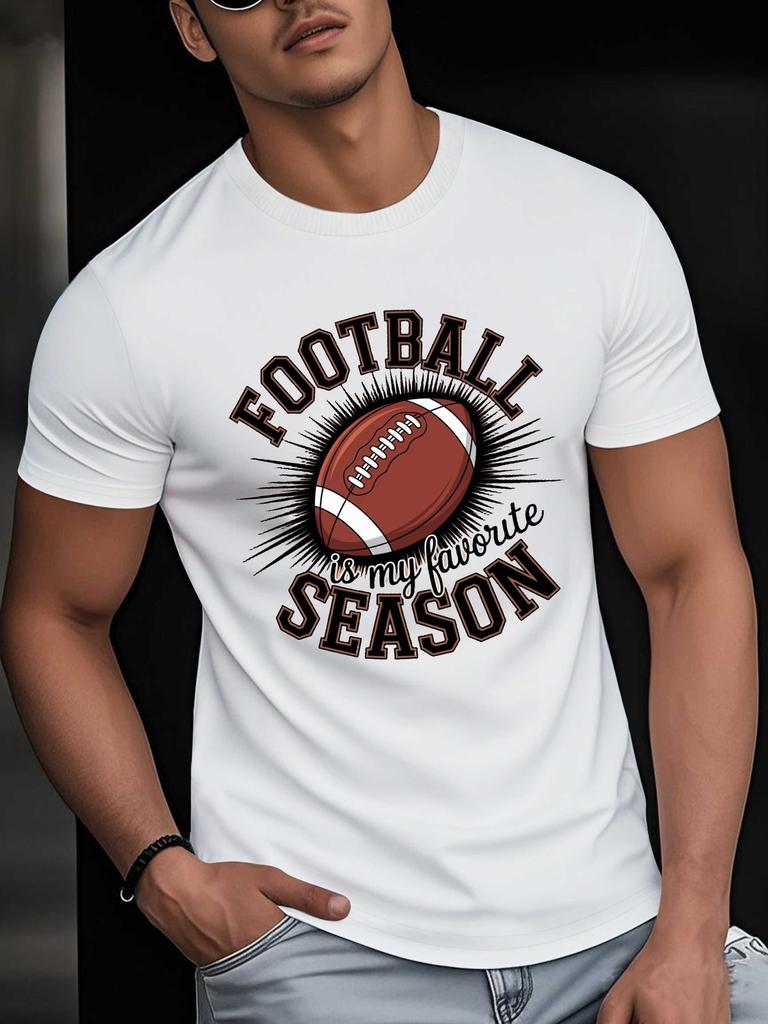 Summer Men's Rugby Letter Printed Casual Round Neck Short Sleeved Casual Sports 100% Pure Cotton Fitness Breathable T-shirt