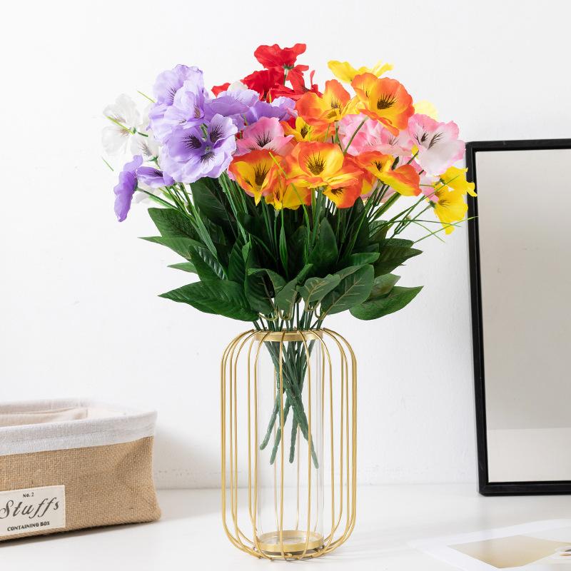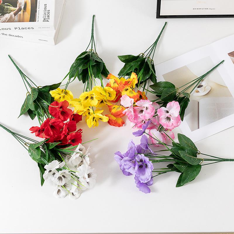 Simulated Colorful Butterfly Flowers, Five Forked Small Handlebars, Tricolor Violets, Artificial Flowers, Engineering Decoration