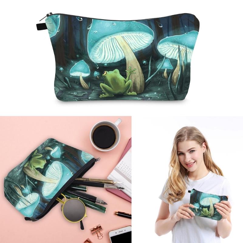 Портативная дорожная косметичка с принтом грибов, большая вместимость, повседневная сумка для хранения для женщин и девушек