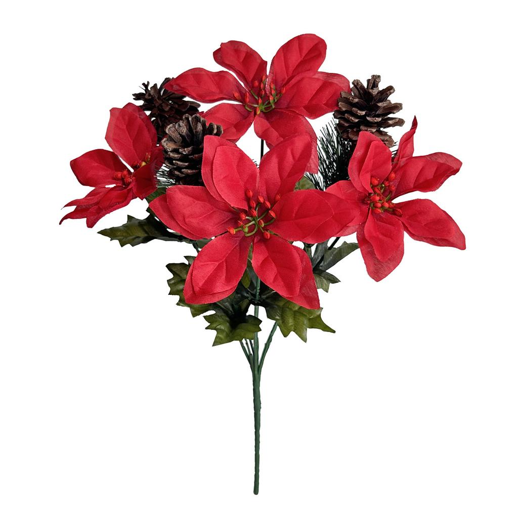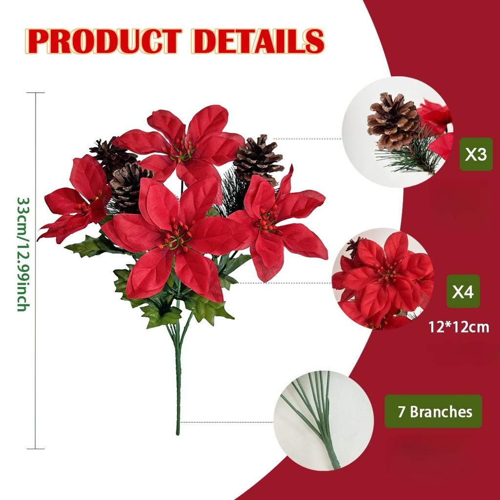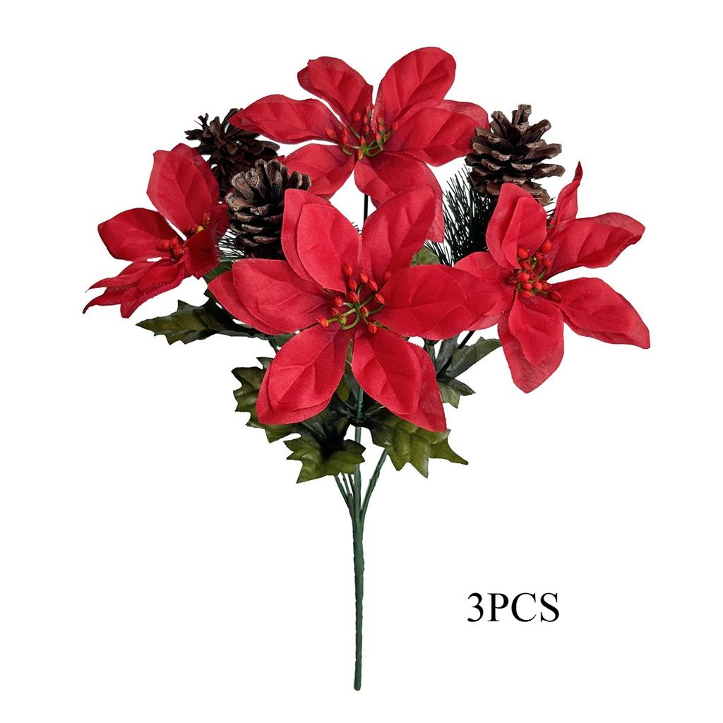 Имитация Рождественского букета Пуансеттия Искусственный цветок Натуральные сосновые шишки Рождественское украшение Украшение Рождественская головка цветка