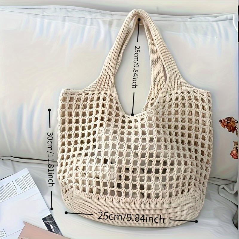 1pc Large Capacity Fashion Woven Tote Bag Hollowed Out Shoulder Bag Ultra-light,breathable and Spacious for Casual Summer Travel — купить товар онлайн с бесплатной доставкой по всему миру!