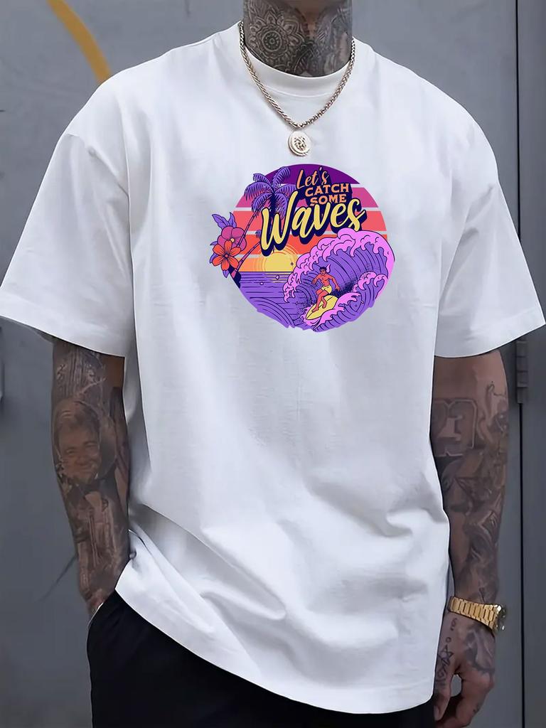 Surfing Graphic Printed Short-sleeved Luxury Cotton T-shirt Summer Unisex Men's and Women's Casual Loose Fashion Trendy Clothing