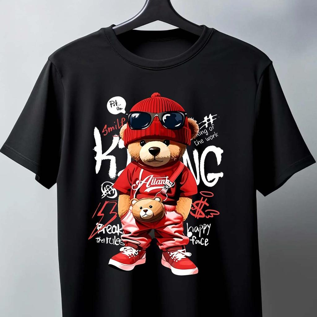 Модная хлопковая футболка с коротким рукавом и принтом плюшевого мишки, летняя, унисекс, мужская, женская, повседневная, свободная, трендовая одежда