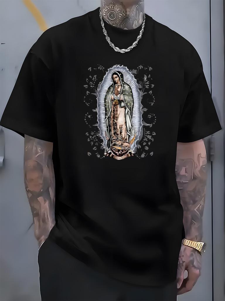 Мужская роскошная хлопковая футболка с коротким рукавом, летняя, унисекс, с графическим принтом «Святая Дева», повседневная, свободная, модная