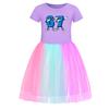 5226 Детское платье для девочек Steal a Brainrot 67 Six Seven с принтом, сетчатой тканью, радужным круглым вырезом, повседневное, из хлопка