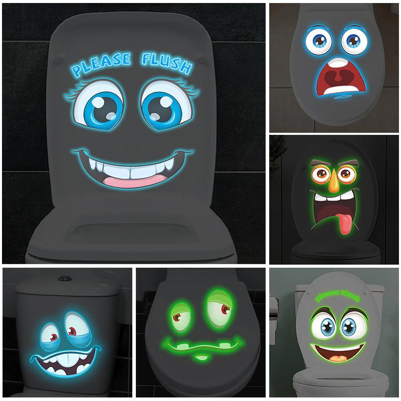 Светящиеся в темноте забавные наклейки на унитаз, водонепроницаемые, съемные, самоклеящиеся ПВХ наклейки, декор для ванной комнаты, наклейки на стену