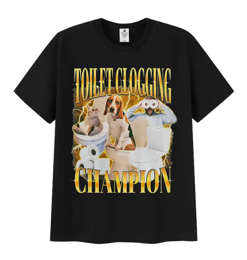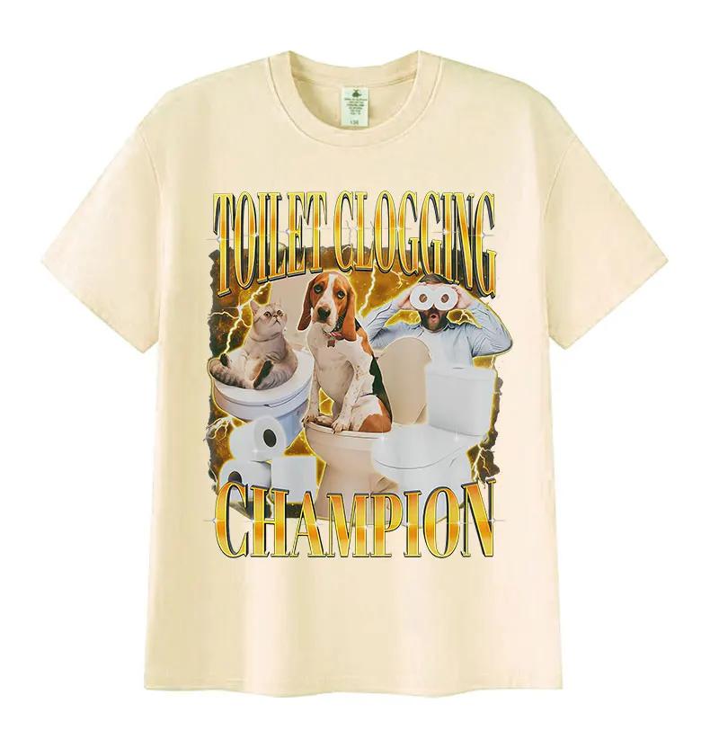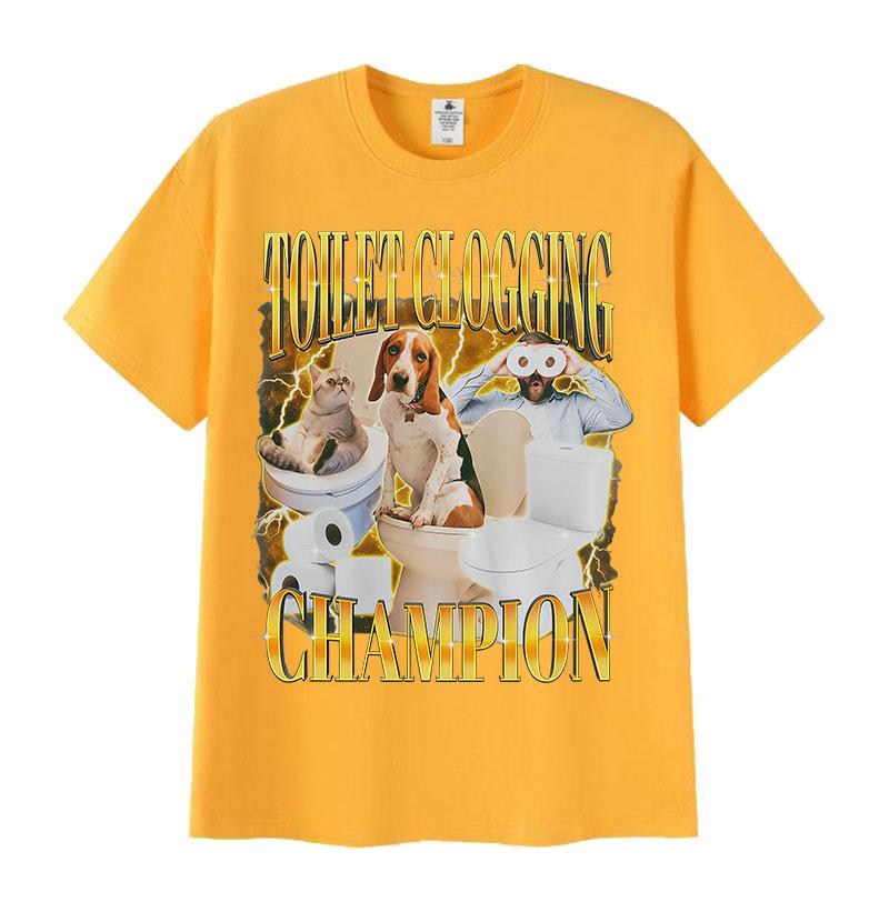 Чемпион по засорению унитаза Забавные Мем Графика Футболки Милый Юмор про питомцев Подарок Футболки с коротким рукавом Модные Высококачественные Футболки