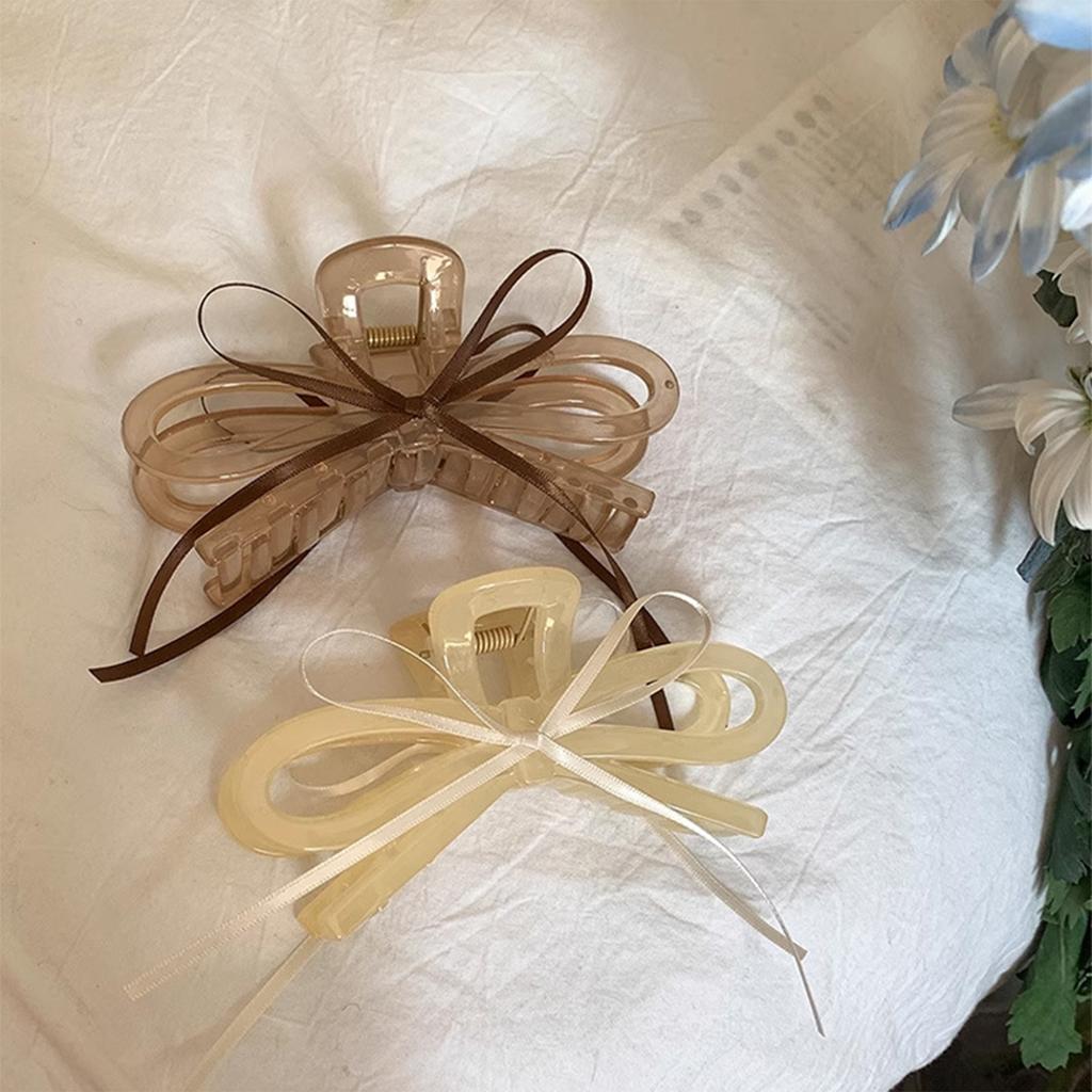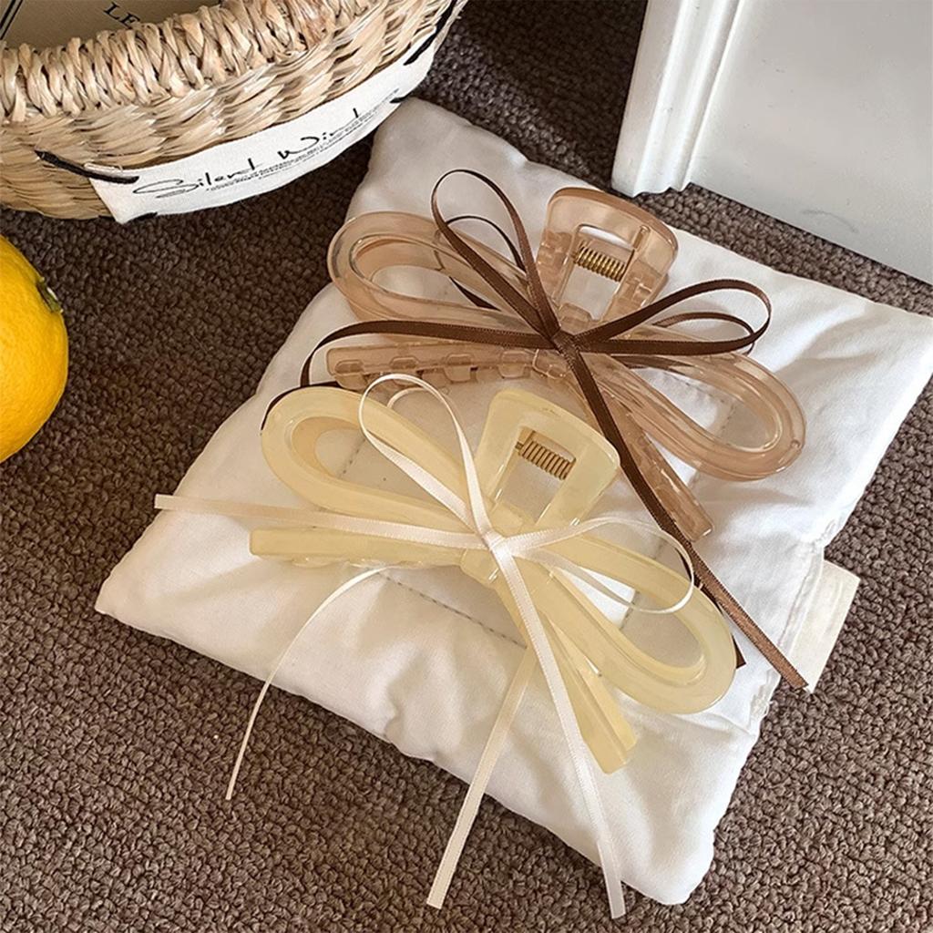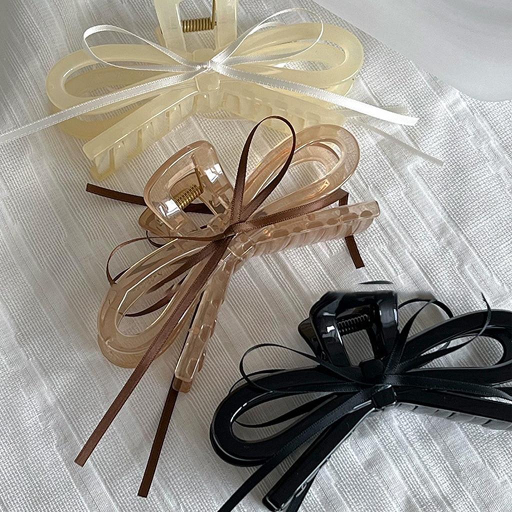 2025 Новый акриловый зажим для волос с лентой и бантом, прозрачный зажим-акула для женщин, девушек, летний, уличный, простые аксессуары для волос, 12 см