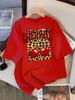 Leopard Cherry Leopard Print Creative Design Womens Tee Shirts Casual T Shirt Summer Round-Neck Streetwear Soft Short Sleeve