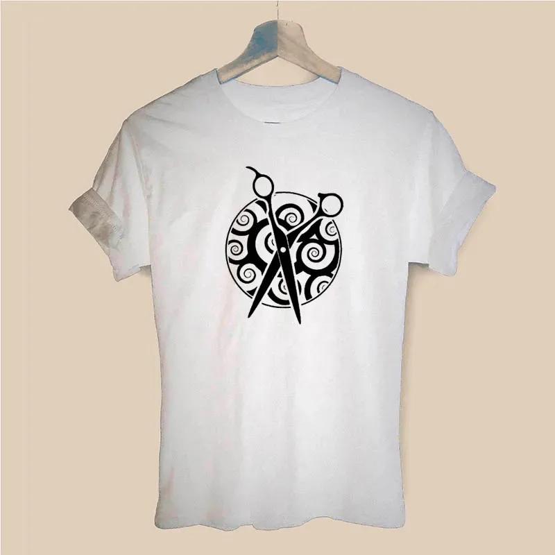 Футболка «Руки парикмахера» Женская футболка с коротким рукавом и круглым вырезом Футболка парикмахера для девушек и женщин Одежда с ножницами Топ