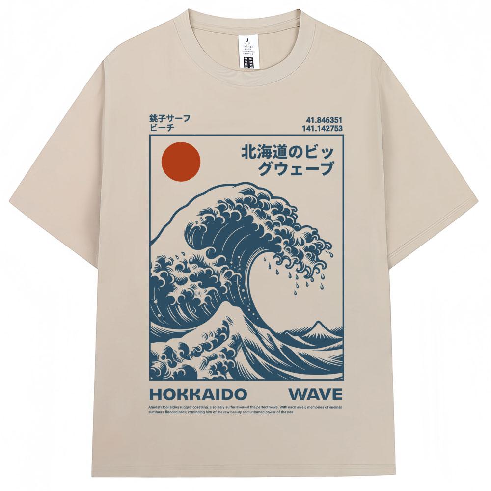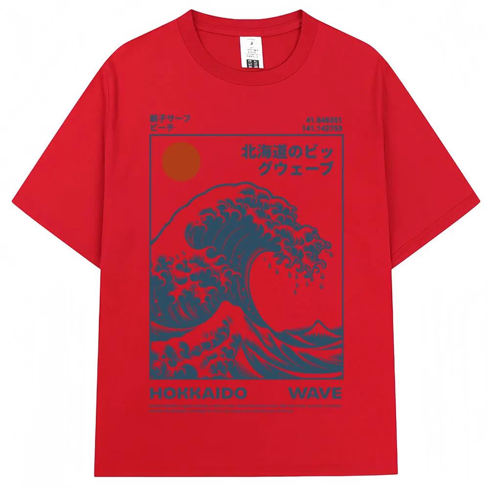 Японский стиль Хоккайдо Волна Винтажная Футболка Мужчины Женщины Харадзюку Мода Высококачественные Футболки Летняя Футболка