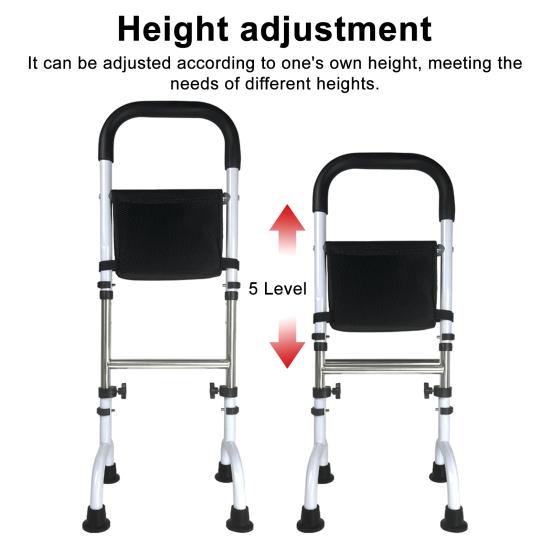Регулируемая высота для универсальности: Высоту подлокотника можно свободно регулировать от 75 см до 91 см, что позволяет адаптировать его к различной высоте кроватей и индивидуальным потребностям пользователей.. Эта гибкость обеспечивает оптимальное положение для максимальной поддержки и комфорта, что делает его подходящим для различных условий, таких как домашние спальни или больничные палаты.