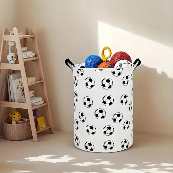Портативные ручки и стильный внешний вид: Корзина с двумя прочными ручками сверху легко переносится и перемещается между комнатами. Его современный дизайн с футбольным принтом органично вписывается в различные интерьеры, служа как практичным решением для хранения, так и привлекательным минималистичным акцентом в ванных комнатах, спальнях или на балконах.
