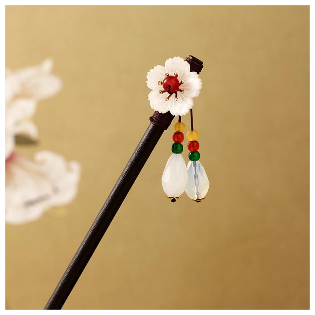 Retro Flower Hairpin For Women Chinese Style Floral Tassel Hair Stick Elegant Vintage Wooden Hairpin Girls Hair Accessories 1pc