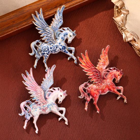 Художественный дизайн летящей лошади: Эта брошь, изображающая динамично скачущую лошадь с яркими, выразительными глазами, воплощает элегантность и смелость, не будучи при этом показной.. Сложная детализация подчеркивает грациозную форму лошади, символизируя свободу, гибкость и артистический дух.. Он добавляет изысканный и романтичный шарм любому наряду.