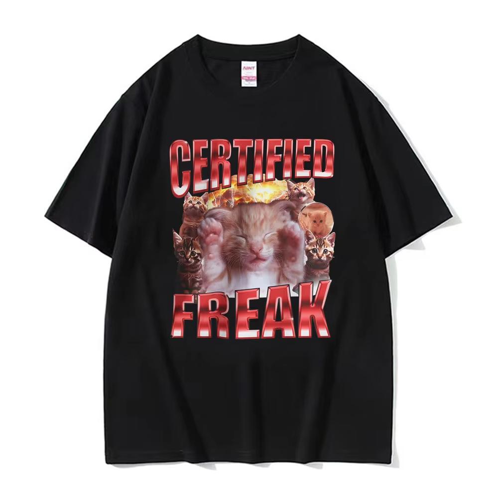 Сертифицированный Фрик Смешной Милый Мем с Котом Футболка Женская Одежда Юмор Животное Графическая Футболка Летняя Каваи Футболка с Коротким Рукавом
