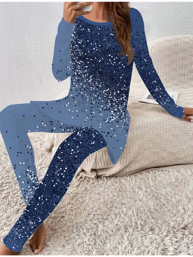Евро-американская мода 3D с блестящим принтом женская футболка с длинным рукавом на четыре сезона + длинные брюки комплект из двух предметов. Идеальный подарок на Новый год и Рождество