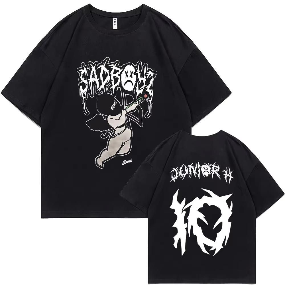 Футболка с графикой Singer Junior H Sad Boyz Летняя Мужская Женская Хип-Хоп Оверсайз Харадзюку Короткий Рукав Мужская Повседневная Футболка из Чистого Хлопка