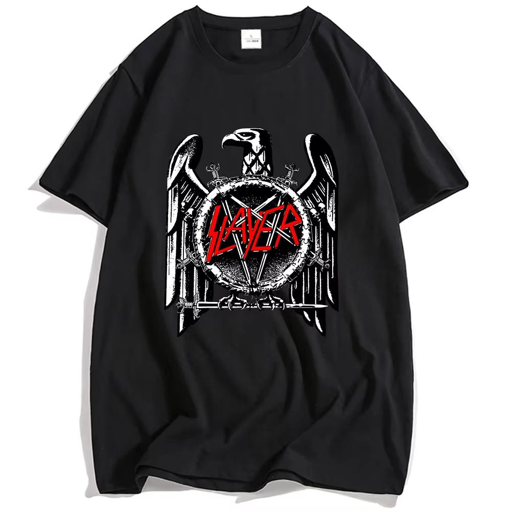Футболка с графическим принтом Slayer Eagle, хлопковая, с коротким рукавом, повседневная, мужская, с круглым вырезом, уличный стиль, унисекс, стритвир, мужская/женская футболка