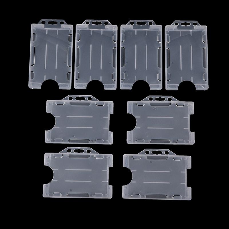 4pcs Unisex Multi-use Hard Plastic Double Sided ID Card Badge Holder Cover Case Office Supplies