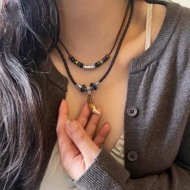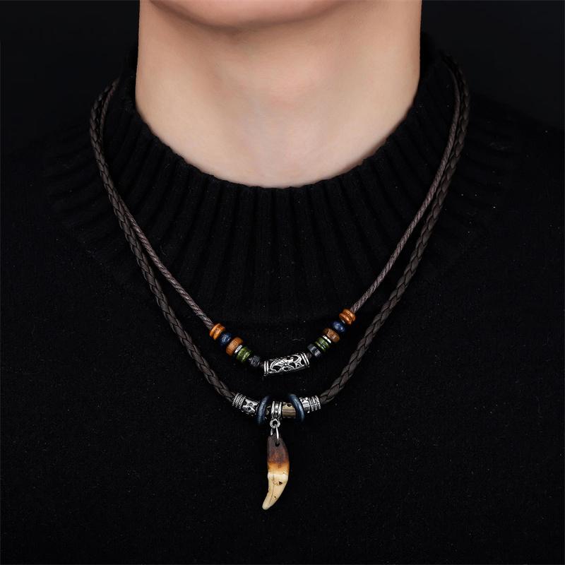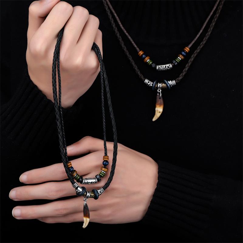 Модное и трендовое ожерелье-подвеска в виде зуба волка на плетеном шнурке для повседневной носки и дорожных аксессуаров