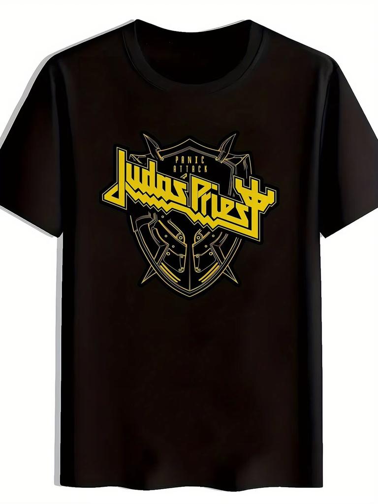 Мужская черная футболка с графикой рок-группы Judas Priest, дизайн логотипа, короткий рукав, круглый вырез, летняя полиэстеровая футболка для фанатов