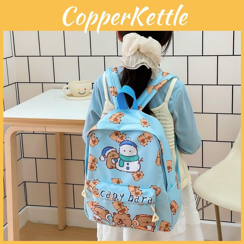 Large Capacity Kids Backpack With Capybara Letter Pattern And Breathable Nylon Material