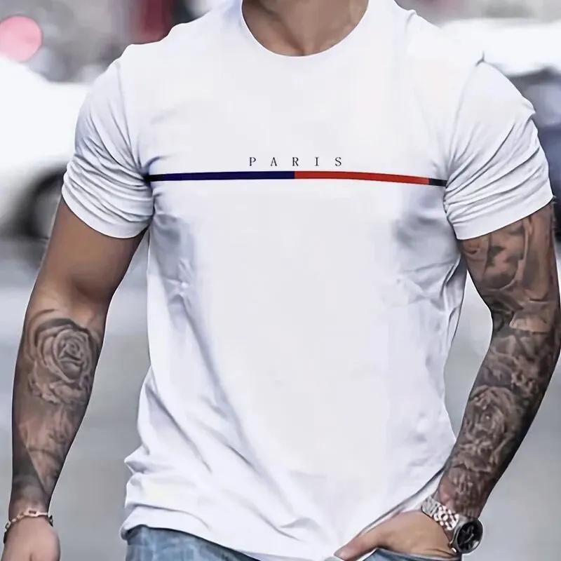 Летняя мужская новая футболка однотонная с принтом букв, свободная, с круглым вырезом, с коротким рукавом, повседневная, модная, уличная, для личности, топы 50945