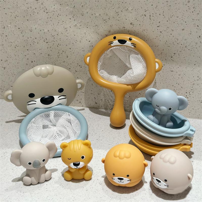 Baby Animal Bath Basketball Hoop Toy Set For Toddlers Floating Baby Bathtub Toys with Balls Net Organizer Game Set For Kids Gift