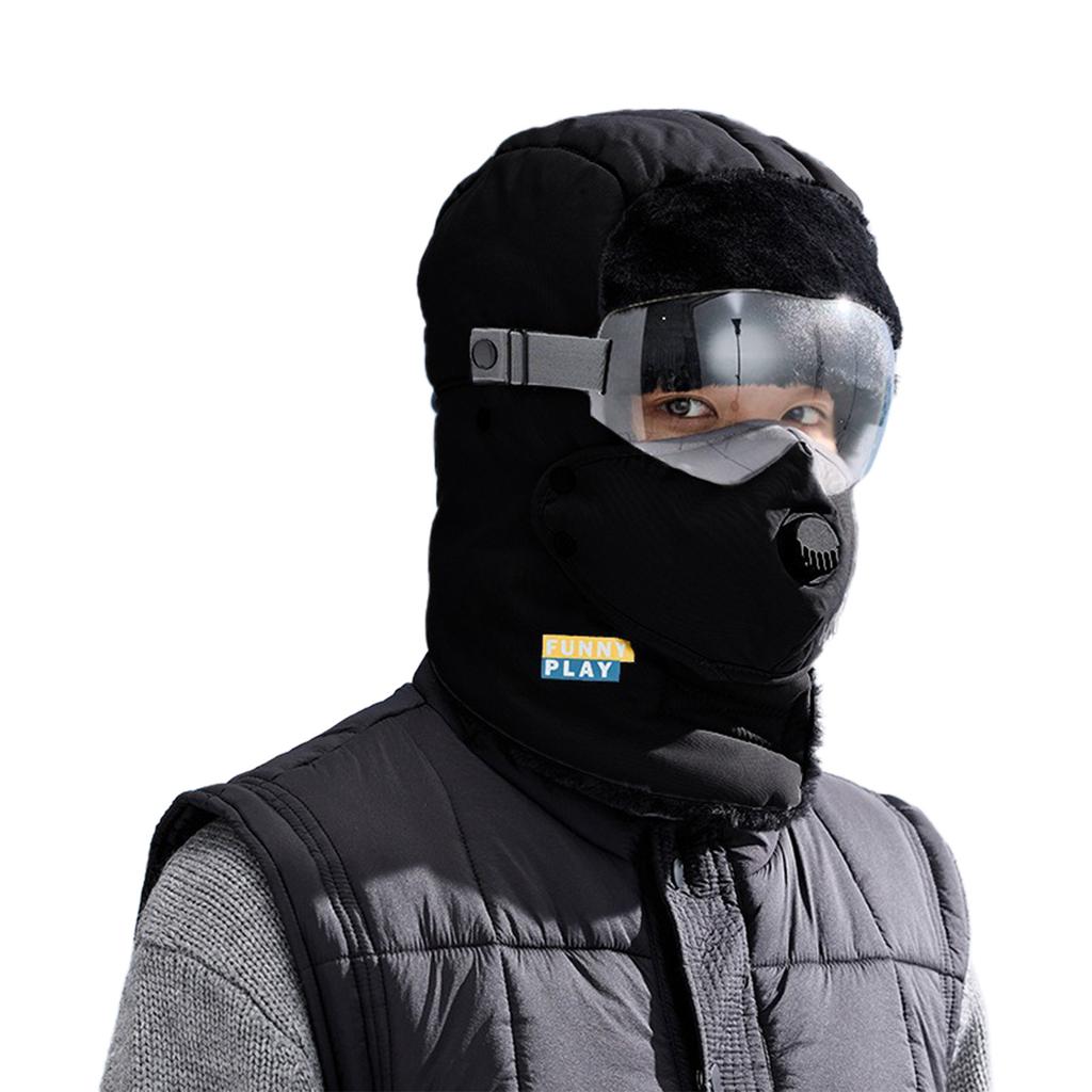 Мужская зимняя теплая флисовая шапка-ушанка с очками, ветрозащитная защита ушей для велоспорта и холодной погоды, большой размер для головы