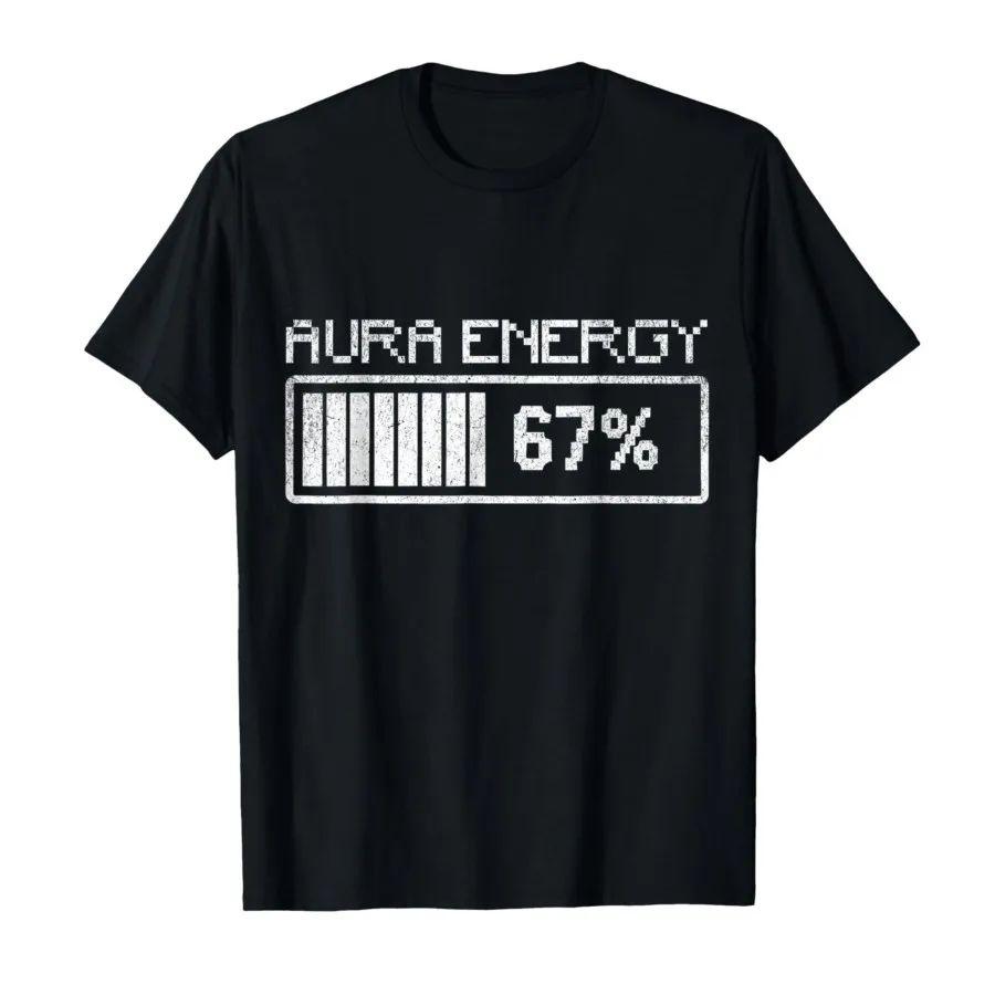 Аура Энергии в 67 Веселых Шесть Семь Мем Сленг Поколения Альфа Мужская Крутая Футболка Женский Мягкий Удобный Хлопковый Топ с Коротким Рукавом