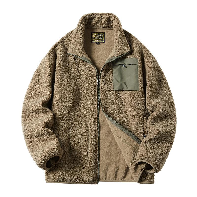 Мужское утолщенное пальто с флисовой подкладкой, куртки из берберского флиса для мужчин, винтажная куртка на молнии с воротником-стойкой из поларфлиса, теплая зимняя куртка, топы