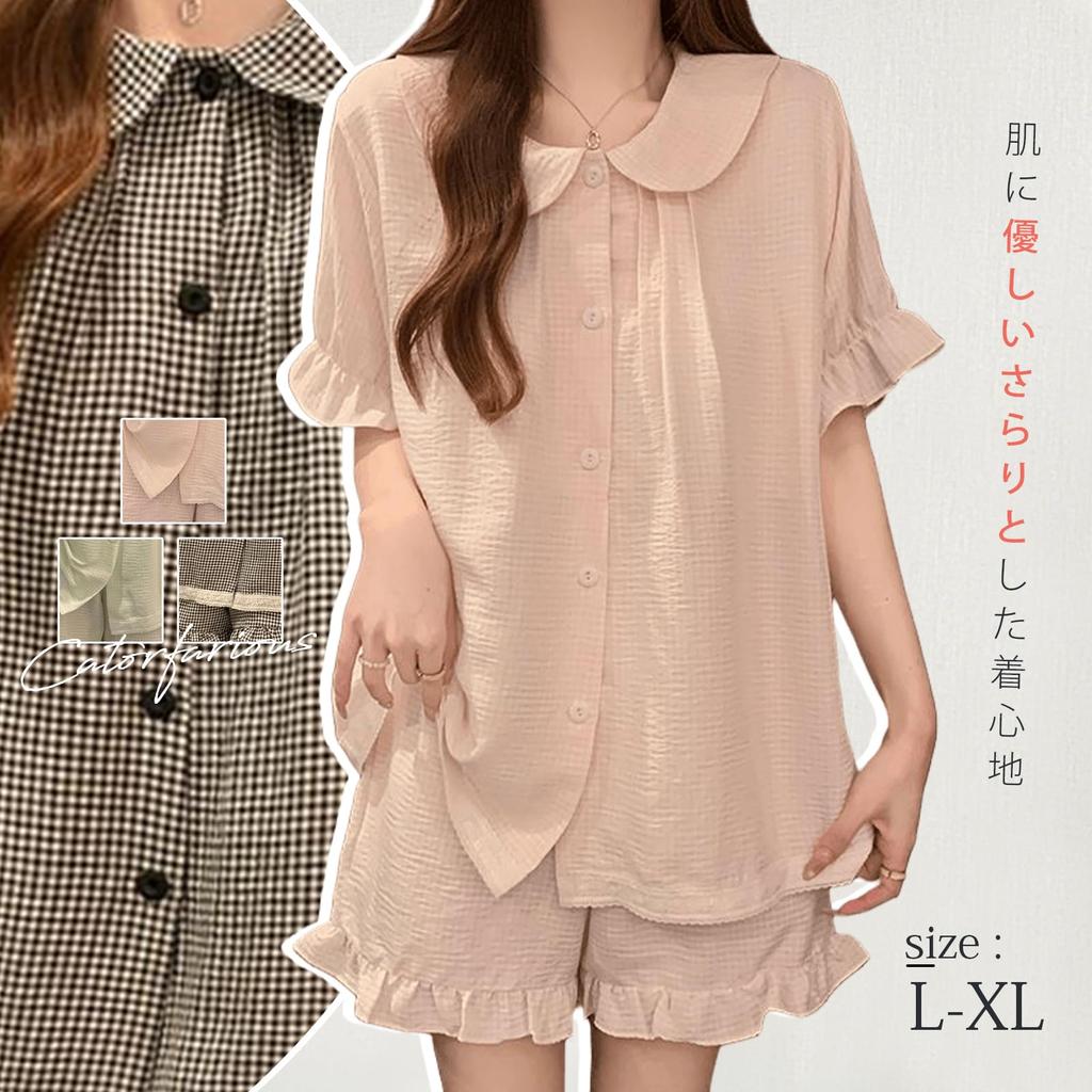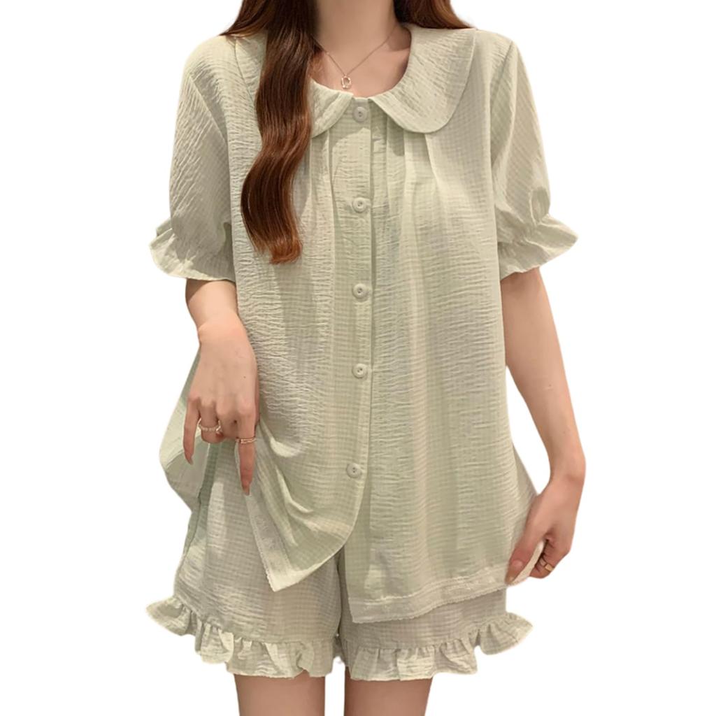 Catorfarious Summer Short Open Cherry Top and Bottom Breathable Women's Pajamas, Sleeves, Front, Shorts, 100% Cotton, Pattern, Skin-Friendly,