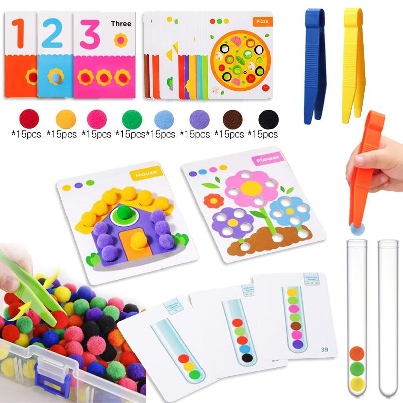 Счет помпонов с соответствующими карточками для сортировки Дошкольное обучение математике STEM-образование Занятия на развитие мелкой моторики Детские игрушки Подарки