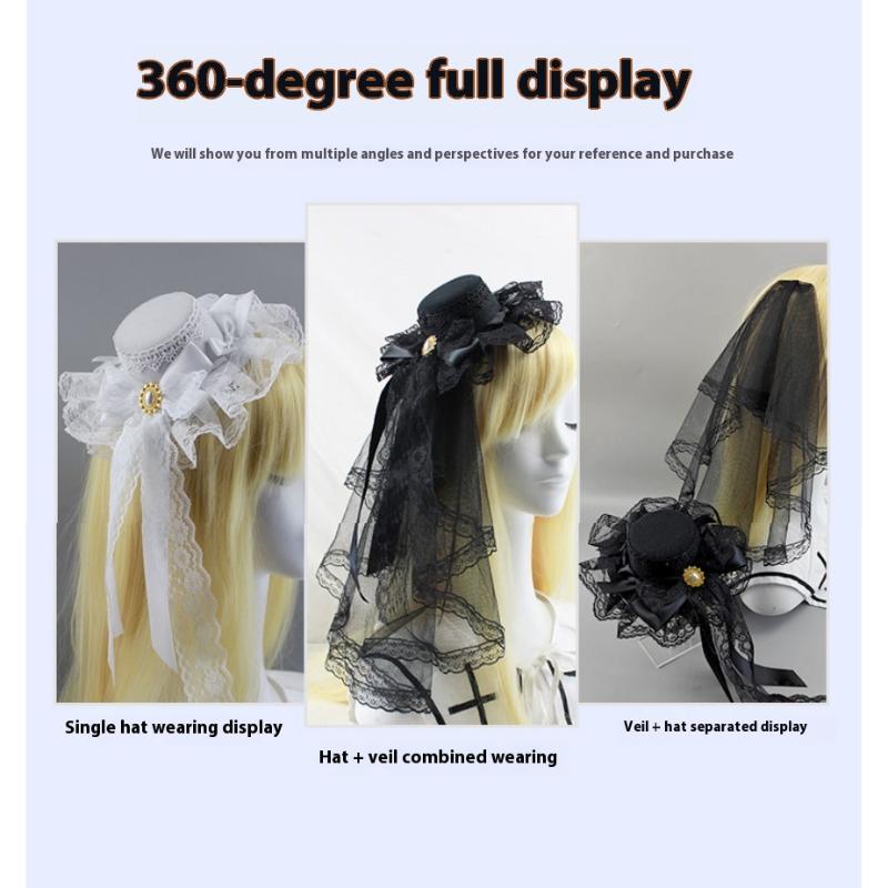 Готическая вуаль Роза Мини шляпка-цилиндр Черная или белая Элегантная модная шляпа для повседневной носки Хэллоуин День благодарения Подарок