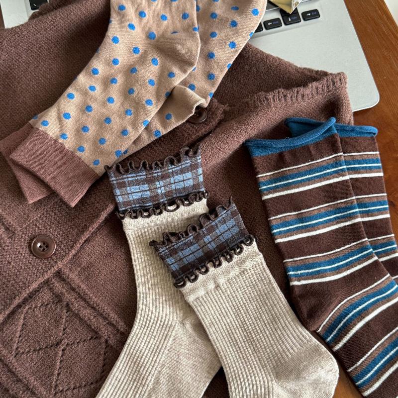 Ретро Цветные Полосатые Носки для Женщин Зимние Теплые Носки Средней Длины Корейская Девушка Мягкие Утепленные Домашние Носки