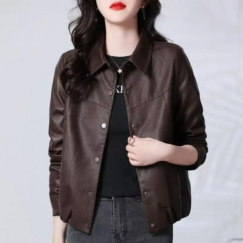 Осень Зима Новая Искусственная Кожа Винтаж Женская Новая Повседневная Мода Короткая Элегантная Куртка Все Подходит Шикарный Топ
