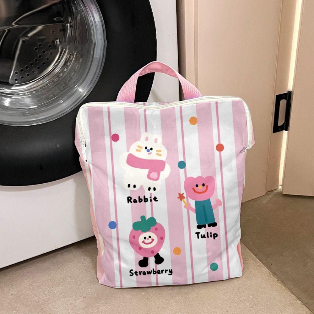 4Pcs Cute Mesh Laundry Bags Set Auto-lock Zipper Portable Clothing Pouch Home