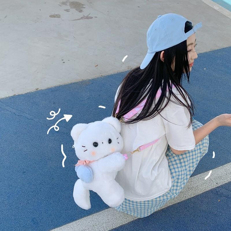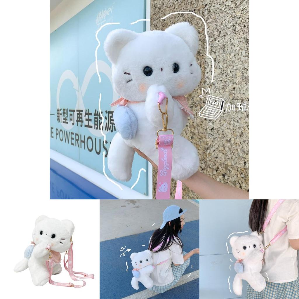 Милый шарф Белый кот Плюшевая кукла Мультяшная наплечная сумка со съемным ремешком для повседневного использования