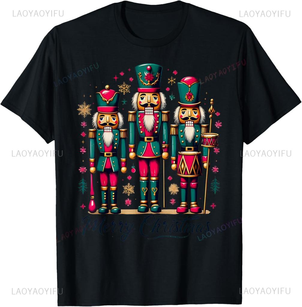 Ретро Рождественские Женские Мужские Футболки с Графикой Винтажные Классические Русский Балет Щелкунчик Счастливого Рождества Хлопковая Свободная Футболка