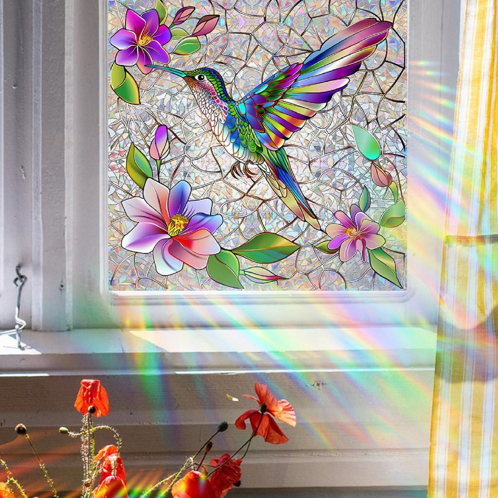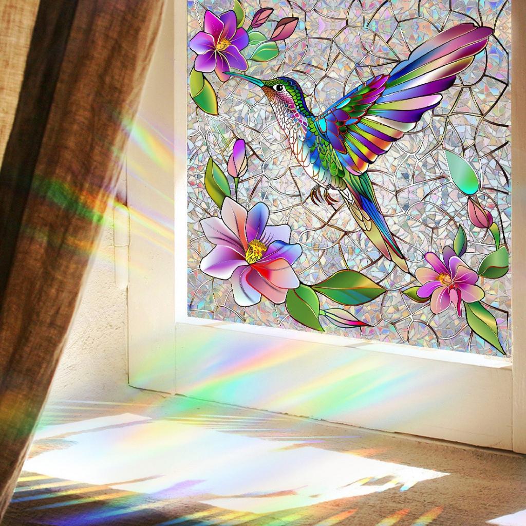 Holiday Sticker Colored Glass Hummingbirds And Flowers Artistic Gorgeous Home Wall Stickers Art DIY Home Wall Decoration Gifts