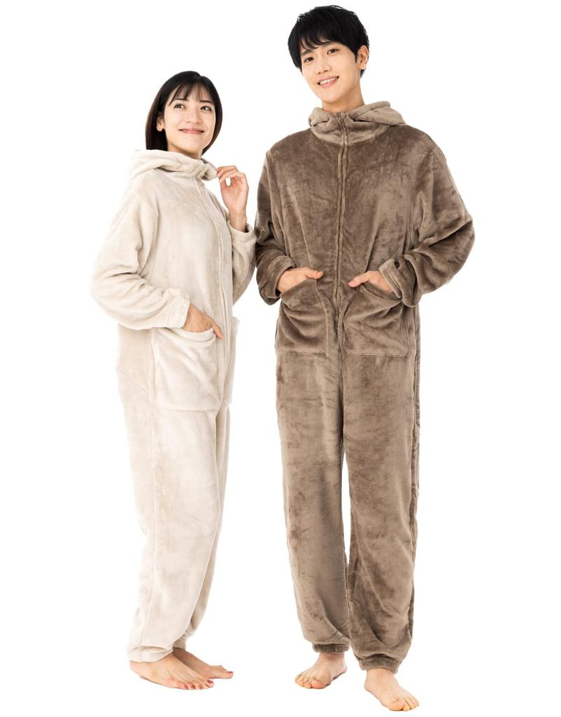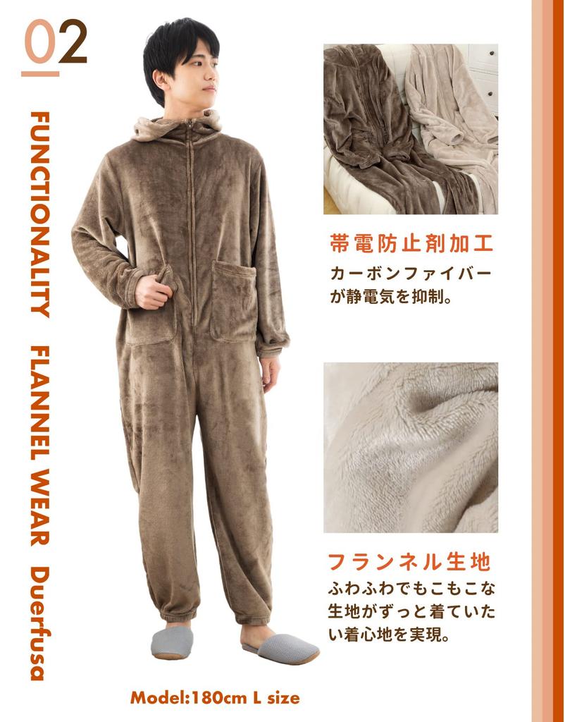 [Унисекс дизайн, шикарные цвета и два доступных размера] Этот унисекс фланелевый плед-одеяло (цельный тип) доступен в двух размерах, M и L! Он выполнен в шикарных, приглушенных коричневых и бежевых тонах. Это пижама, которую могут носить люди всех возрастов. Молния на бедрах также означает, что вы можете носить его в туалет, не снимая.