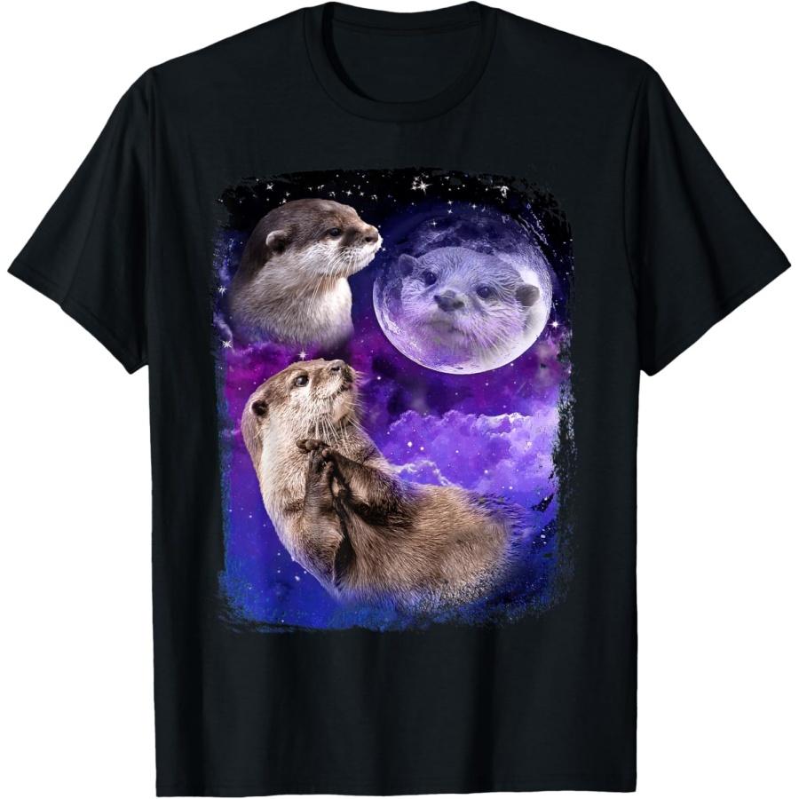 Funny Otter Lover Moon 3 Cute Otters Animals Meme Vintage T-Shirt